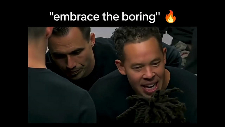 Watch the NBA example of a strong coach message during a short break telling his players to embrace the boring...