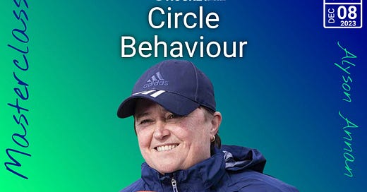 The topic chosen by Alyson Annan for her masterclass was circle behaviour. No surprise there, since she was a prolific striker herself in her playing days. We recorded it live on December 8 in 2023.